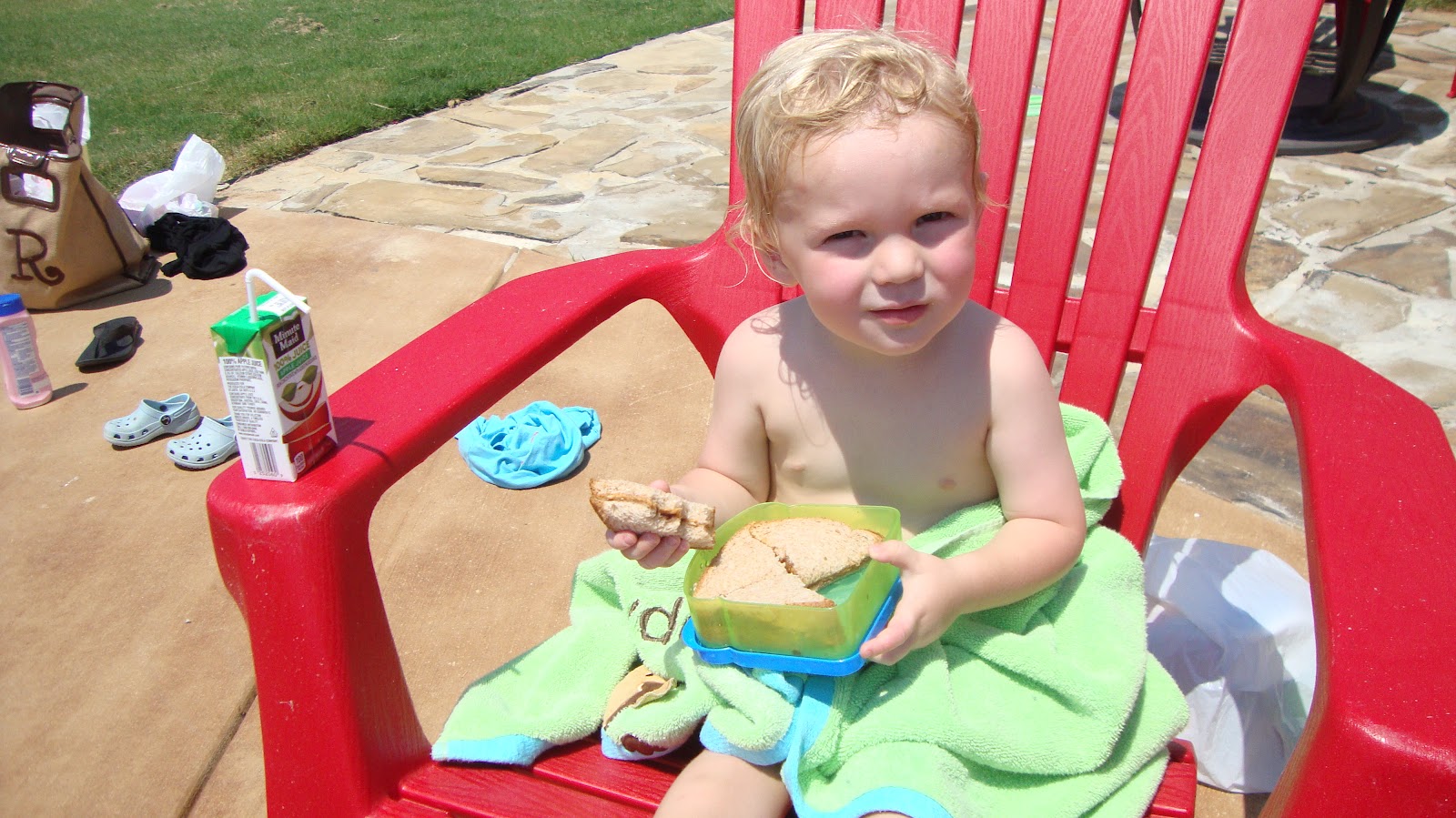 Courtney taking a break after Ryder dragged her all over the pool to play!