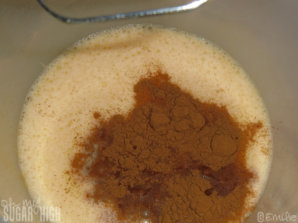 Beat eggs in medium bowl. Add cream, cinnamon and vanilla and beat until well blended. Pour over cut pieces of cinnamon roll pieces.
